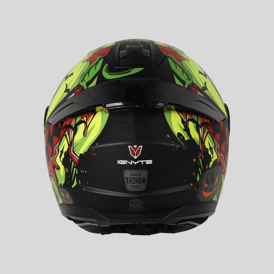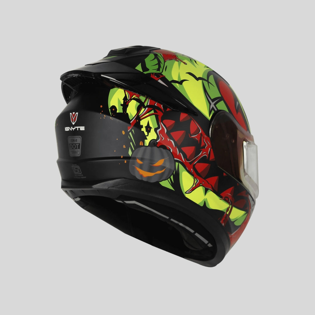 Expertly crafted from high impact PC-ABS blend material, the IGN-8 Pumpkin helmet ensures compliance with DOT Standards while offering superior durability. Its advanced ventilation system, dual certification, and anti-scratch coated visor with Pinlock 30 shield provide maximum protection and comfort. The sleek design is completed with a sporty spoiler and removable/washable interior padding.