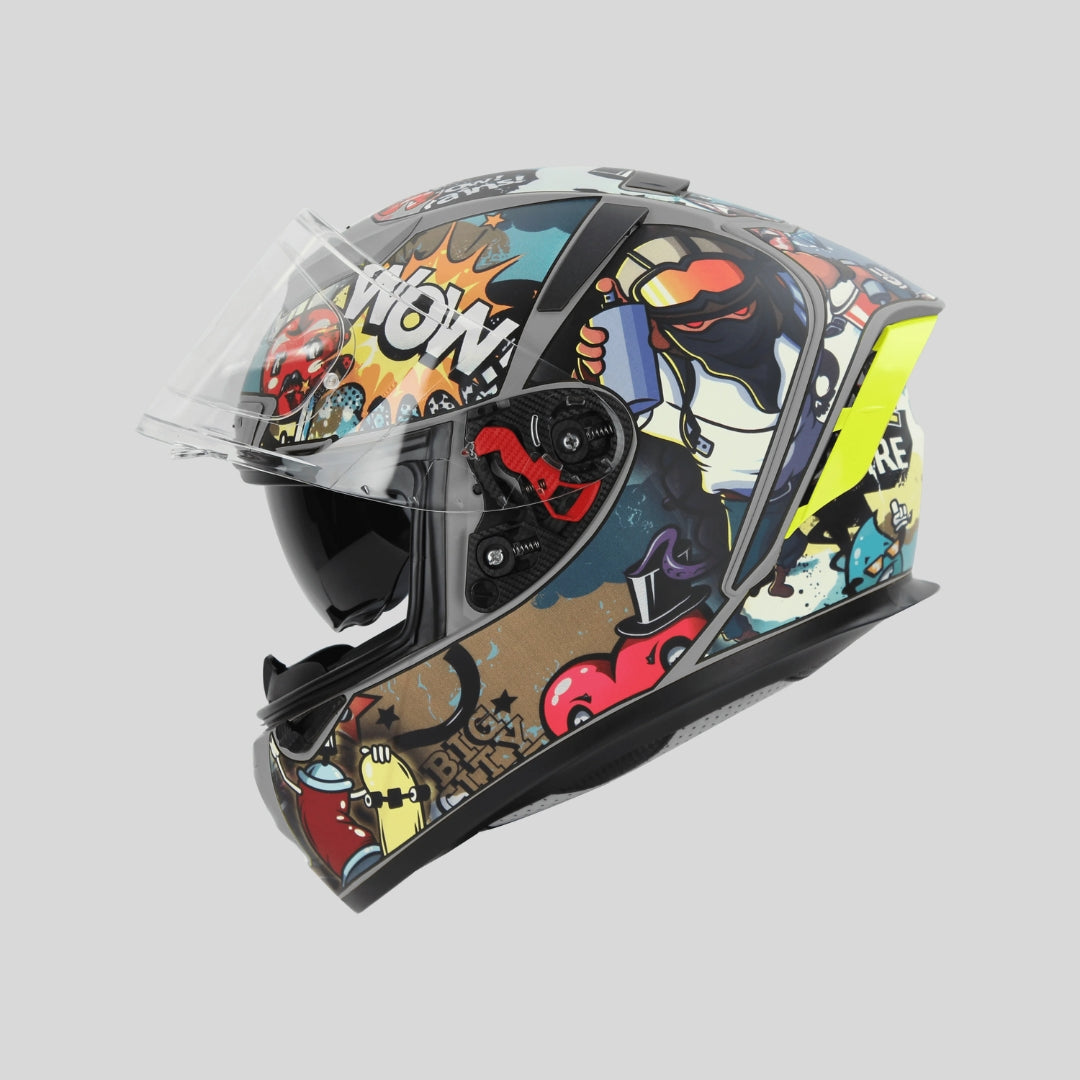 The IGNYTE IGN-4 Subway Surfer helmet offers unrivaled protection and comfort for motorcycle riders. Designed with input from helmet experts and enthusiasts, this helmet is dual certified by DOT and ISI, and features a Pinlock anti-fog shield, washable padding, and an inner sun shield. With NACA Duct air flow technology, this helmet provides optimal ventilation and increased stability at high speeds. Ride with confidence and style in this superior helmet.